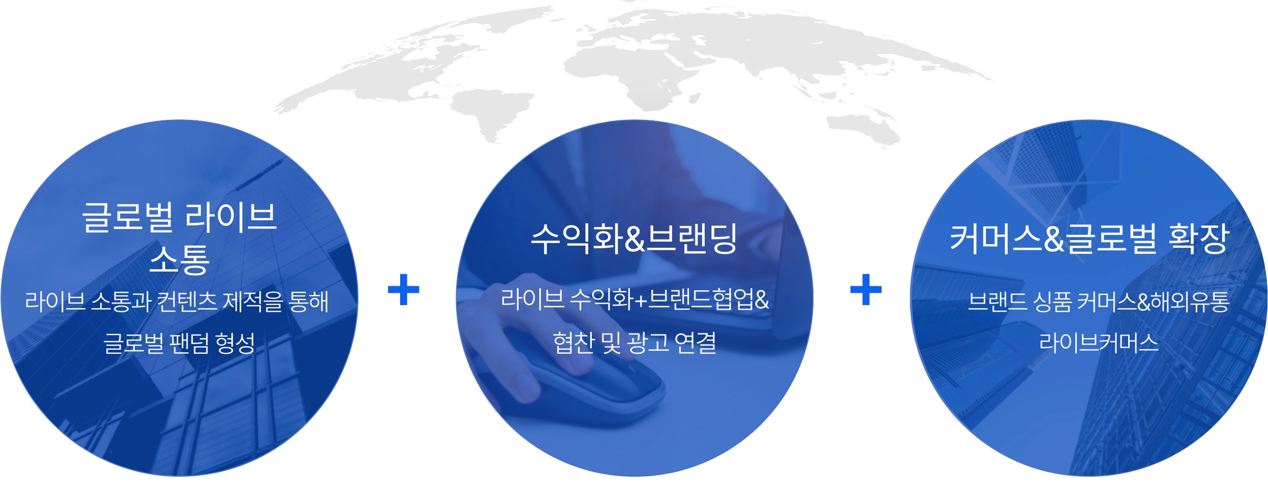 단순한 라이브 수익을 내는 것을 넘어 전세계 팬들과의 실시간 통을 통해 **”글로벌 인플루언서”**로 성장할 수 있도록 돕는 콘텐츠 브랜드 회사입니다.